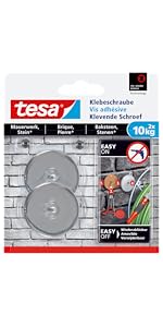 Die tesa Klebeschraube lässt sich für raue und feste Untergründe wie Mauerwerk und Stein, Fliesen und Metall, Tapete und Putz im Innen- und Außenbereich einsetzen. Die meisten Ausführungen haben eine Design-Abdeckplatte für dekorative Anwendungen und ermöglichen so ein unsichtbares Befestigen von Objekten. Natürlich sind die Klebeschrauben wiederablösbar, sodass man sie zum Beispiel auch in Mietwohnungen verwenden kann.